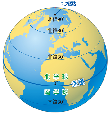 その「自転軸」に対してちょうど真ん中の線を0度、「赤道」と定めました。